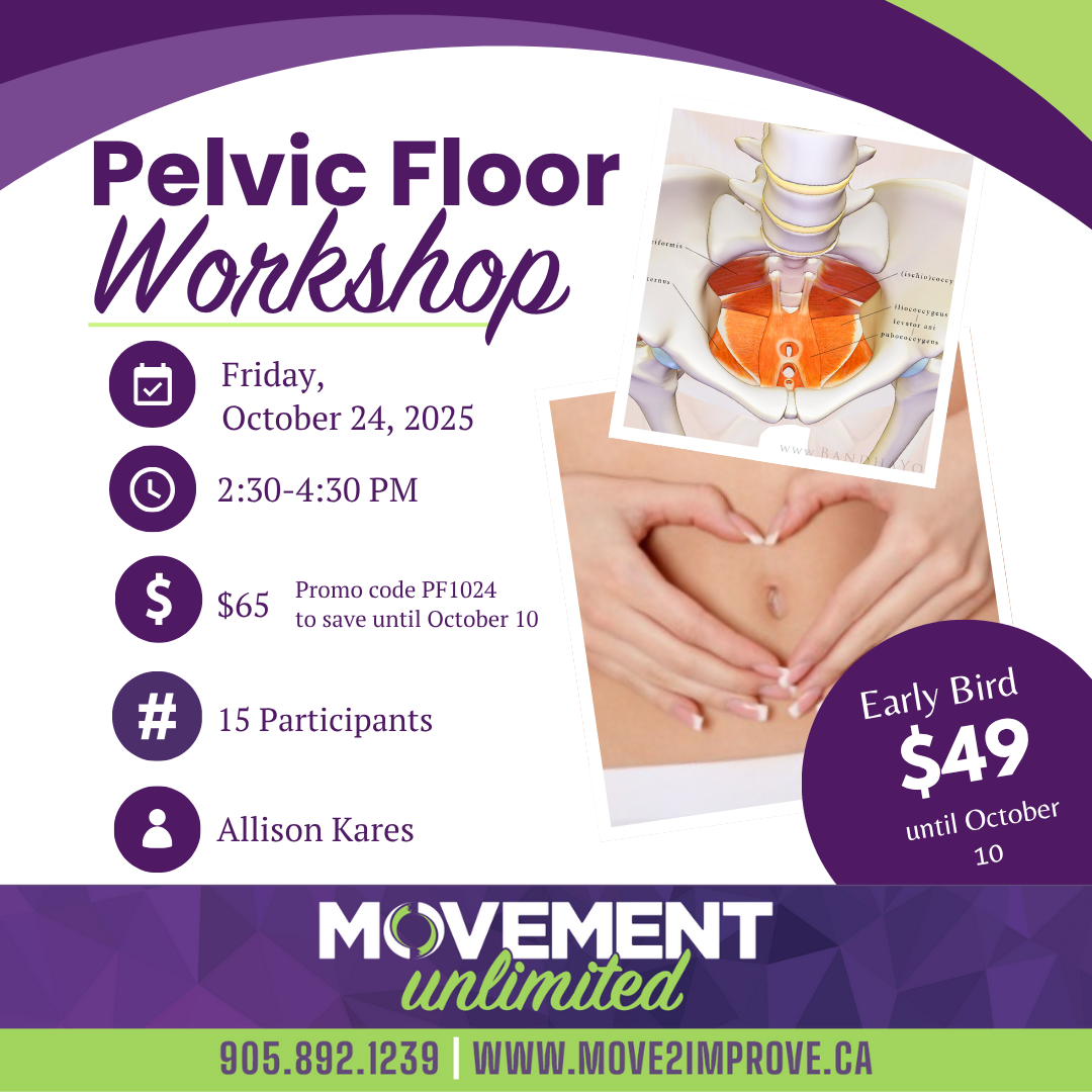 Movement Unlimited Inc 160 Hwy 20 West Unit 4-6, Fonthill, Ontario, CanadaLearn why your pelvic floor muscles are some of the most important muscles in your body, and tune into a movement practice that will help you connect to your core, activate your pelvic floor, and feel confident & empowered for birth & postpartum recovery.